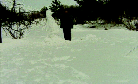 Anna Lehtonen's Shovelling Snow plotted the matter-of-fact downfall of a young man and his subsequent religious enlightenment, from the vantage-point of an independent bookstore - an embodiment of enlightenment for sale. Over a film of a snowman being built (and played in reverse), the voice-over tells us of his drug dealing and prison conversion - all brought about by circumstance and a dearth of ego and romance.