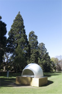 CHRIS CREE BROWN Aeolian Harp 2002 Concrete / ferro cement,wood & nylon, 5 x 4 x 7 m. Shown on the Archery Lawn, Christchurch Botanic Gardens, 4 September - 30 November 2002
