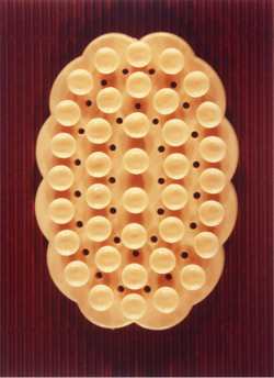That uneasiness was realised on a monumental scale in The Colony, the work Hipkins exhibited at the 25th Sao Paulo Bienial. A hundred individual photographs arranged as a bar chart or cityscape, the images were of 'hand-painted polystyrene models. . . crudely glued together and documented on makeshift paper backdrops'.(12) For all this fragility and tentativeness, The Colony presents a model world. It's a vision of what the future used to look like, suggesting cities of geodesic domes, like those of the counter-cultural community of Drop City, founded in Arizona in 1965, as well as the post-apocalyptic structures and off-world encampments of classic science fiction movies.(13) Given that it was the decade in which the idealism of modernity attained its greatest heights and reached its deepest troughs, it seems no accident that the associations that The Colony conjures are rooted in the 1960s. At the same time, The Colony might be smaller than either its epic scale or the big ideas it implies. The globular forms of the models look like spores of disease viewed under a microscope.