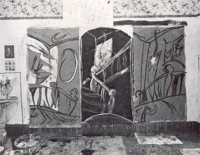 In the original drawing for the Staircase Triptych there's actually a figure emerging from a door. I did a big triptych in 1977, when I was living at Waikanae which was loosely based on a painting by Signorelli of Saint John the Baptist - part of a figure emerging from a lit doorway. It was a very unusual, a very strange painting. I think I had in mind the feeling that I got from that now defunct triptych. It was never completed, and it has probably been painted over.