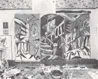 PHILIP CLAIRMONT: The idea of doing a set of progress photographs of the Staircase Triptych arose when Mark Adams came to see me just as I was about to begin a big painting. He had the idea of doing photographs of one of my paintings right throughout its various stages.