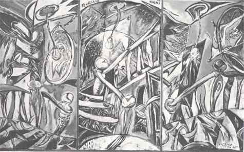 PHILIP CLAIRMONT: The idea of doing a set of progress photographs of the Staircase Triptych arose when Mark Adams came to see me just as I was about to begin a big painting. He had the idea of doing photographs of one of my paintings right throughout its various stages.