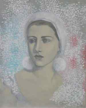 Neate's approach to painting is deliberately aligned with the hobbyist: small mass produced frames and a style which borders on an amateur paint-by-numbers exercise. The application of washed out paints evoke a sense of time-sepia, pink, white and blue share the characteristics of discarded paper left to deteriorate and fade in the sun. Could Woman with Pompoms be the winter beauty queen of, say, 1967? Neate's style looks back to a time past and demonstrates how easy it is to regenerate 'cancelled' imagery.