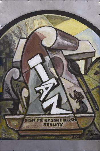 NIGEL BROWN Dish Me up Some Harsh Reality 2006 Oil and stainless steel on linen, 900 x 600 mm