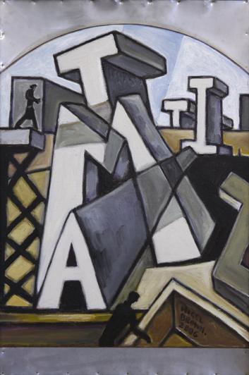 NIGEL BROWN Touch of Clay 2006 Oil & stainless steel on board, 1200 x 790 mm.