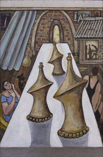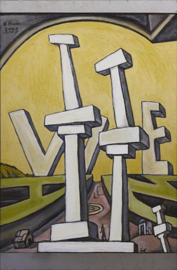 NIGEL BROWN Wooden Monument 2006 Oil on linen, 1350 x 800 mm.