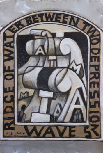 NIGEL BROWN Wave 2007 Oil and stainless steel on linen, 900 x 600 mm.