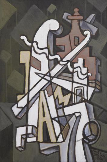 NIGEL BROWNWave and Cubic Still Life 2006 Oil on acrylic on linen, 900 x 600 mm.
