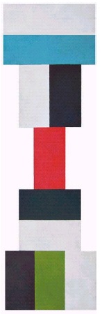 While the exhibition catalogue ensures a cohesive investigation of the artist’s work it is not encumbered by unnecessary biographical details. Rather, Hanfling explores only those aspects of Good’s life and circumstance that reflect specifically upon his art. One of the more notable suggestions made by Hanfling is that Good’s work is likely to be significantly influenced by his surroundings—a common enough claim in art criticism perhaps, but not so common when the artist is a geometric abstractionist. As the curator says, ‘The wider context for Good’s paintings, the New Zealand landscape, or even the city of Auckland—its centre and its suburbs—can be described as disordered and shambolic . . . disunity, a certain kind of visual pandemonium, is characteristic of New Zealand, and affects New Zealand art.’(2) Good’s work does often appear disordered but in a purposeful, structured way. Colour Column, or even Triangle Suite-No. 6, are excellent examples of this. Hanfling suggests that the work of Good, together with that of Milan Mrkusich, seeks not simply to mirror the disorder of the artists’ environs but rather to respond to it ‘as if by negation’, countering the chaos of the setting with calming, refining abstraction. This effect of ordering further emphasises Good’s ideological alignment with the great abstractionists of Europe: Kandinsky and Mondrian.