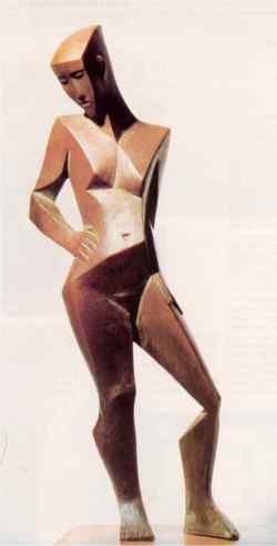 The bronzes shown at Barry Lett's, collectively entitled 'polychrome bronzes', were also coloured. However the colour was kept to a minimum in most pieces, or did not appear at all. Stringer's modelling created the hard edge and the shadow (hence the Cubist appearance) making the painted shadow obsolete. What colour had been applied to the bronzes had been scraped or rubbed back to convey the feeling of an artifact, or patina-like traces. Stringer's feeling for the metal itself must have occasioned these changes. We see him turning from explicit paint to a less traditional and more modelling-oriented use of colour.