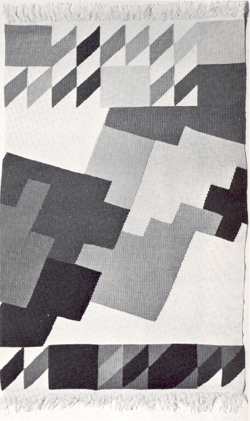 Yet it seems that as a textile designer his work is still seldom seen or appreciated. Over the last few years the weaver's craft here has burgeoned and very high standards of technique and handling of materials have been achieved'; but, in the areas of colour and design, in which Crook excels, the over-all standard is still low. Many of our better weavers, not to mention the textile industry itself, would do well to look closely at Gordon Crook's work. Recently he has collaborated with Petone weaver Leslie Nicholls in the production of Crook-designed, Nicholls-woven kelim technique carpets. One of these was exhibited at the New Zealand Academy Handweaving Unlimited exhibition last year and two were hung at Crook's recent print exhibition at the Peter Webb Galleries.