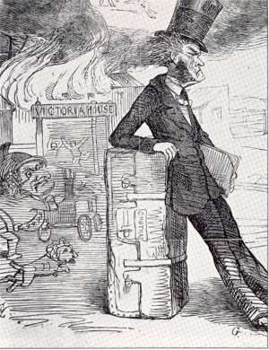 Chevalier began work as a cartoonist for the Melbourne Punch soon after arrival and his talents were fully employed in commenting on the lively and vigorous political life in the young state. His caricatures show that he was well versed in literature, and very aware of the classical tradition in art: but the early cartoons were rather awkward in composition; and the drawing, especially of the figure, was rather weak. The ideas, by contrast, were inventive: there was a sophistication about them that was rather surprising in Melbourne in the 1850s.