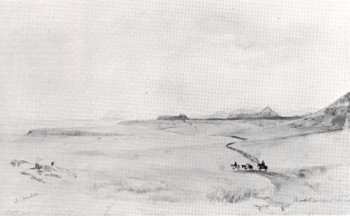 Chevalier's work in Otago is confined to drawings or watercolours and they are rather remarkable on two points. In the first place, one is amazed to see the amount of work he produced under the most trying conditions. In style, the landscapes made at the outset of his journey are closely connected to the work he had been doing in Australia. The compositions are rather tight and there is little to distinguish the New Zealand landscape from the Victorian. That, however, did not last very long. It was the result of Chevalier's intent to produce works of topographical exactness and reconcile this with his love of nature. As he moved through Otago his sensitivity towards the essential features of the landscape developed markedly. In this respect he was working in a manner similar to those French landscape artists of the nineteenth century who elevated studies of nature into an art form in their own right.