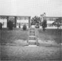 So you've now got this silent roar of the motorway coming out of the raw silence of these schools. Of course if you didn't go to a State School it might not mean too much; and even if you did the image may trigger off countless personal emotions: but the overwhelming effect is of a threatening stillness, based on a strong sense of empathy on the part of Dashper. Standing looking at these images framed within bricked-in windows, you see something of yourself - not just part of your past, but part of your present and future too. Therein lies the threat perhaps. You put your eyes in that school, looking out the window at people going places; you stuck in there. Three views of the same image, the same school. Maybe that's one for each year until you're fifteen - old enough to leave, old enough to learn to drive. The chances are that in a couple of years you'll pass the school and remember those days - you were still going to get somewhere. Walking between the images you get some sense of driving past either the same school every day or one after the other, the length of the country.
