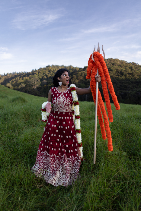 Abhi Chinniah is a photographer born in Christchurch and currently living in Auckland. Her background, though, is more complex than that. Chinniah’s grandparents emigrated from Jaffna in Sri Lanka to the rubber estates in Malaysia. Her parents emigrated from there to Aotearoa New Zealand. After struggling for acceptance here, her parents emigrated back to Malaysia, while Chinniah, after spending some time in Malaysia, returned to Aotearoa. Chinniah is a self-taught and unconventional photographer, who has, in a relatively short time, built strong connections with South Asian and South-East Asian artistic communities here.