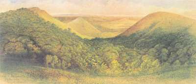 Gordon H. Brown, in a longish essay, has made some valuable suggestions as to Kinder's methods of working and the stylistic origins of his more ambitious works. Mr Brown lays much emphasis on Kinder's attitude of non-involvement, his command of a 'neutral' style. There is a plausible comment in the essay on Kinder's propensity to 'architecturalise' land-forms (though in connection with this he fails to mention Kinder's undoubted familiarity with Euclid and the classics of geometrical proportion, which surely must have been the main influence on the ordering of his compositions). I think myself that, notwithstanding these factors, Kinder's watercolours fit quite comfortably into a region of nineteenth century romanticism. Mr Brown's own introduction of Ruskin and of Philipp Otto Runge points in this direction. We know from his autobiographical notes that Kinder in the more formative years of his life was interested in Thomas Carlyle and in the literature of French and German Romanticism. Consider also such clues as Kinder's interest in the Gothic, his early education under a teacher influenced by ideas derived from those of Rousseau. If we look further in these directions I think we will conclude that New Zealand is being seen with a Ruskinian eye, that of a strayed and perhaps unconscious Pre-Raphaelite. From these hybrid strains arise the poetry and ambiguity of Kinder's best works.