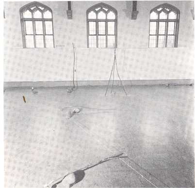 Changing to balsa wood, line and fine gauze has led to a new means of expressing his ideas. He is now using natural materials in a different way, trying to incorporate them into the sort of structures he is making now. But so far, although he has been 'toying with sticks and lines', it's not working.
