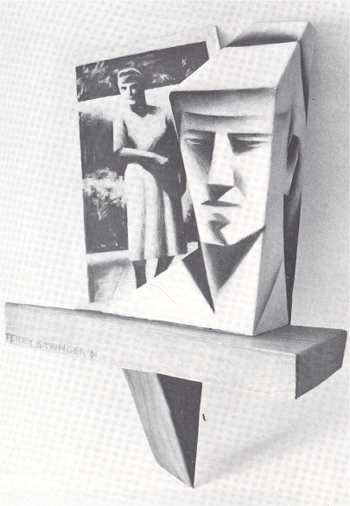 The work of the third artist, Terry Stringer, is in some ways more difficult to come to terms with. In the first case, and in spite of increasing familiarity with his work, it contains an element of surprise, of the unexpected. Furthermore, structural technique is not obviously applicable to household furniture and the everyday objects which form a part of our daily lives. Stringer's structures are distorted in a disconcerting manner-one which has been developed from his initial interest in giving a three-dimensional (in the literal sense) appearance to the flat surfaces of conventional paintings. When the technique is applied to pieces that in their original form already posses the attributes of length, breadth, and depth, the resulting work is crazily and attractively non-functional.