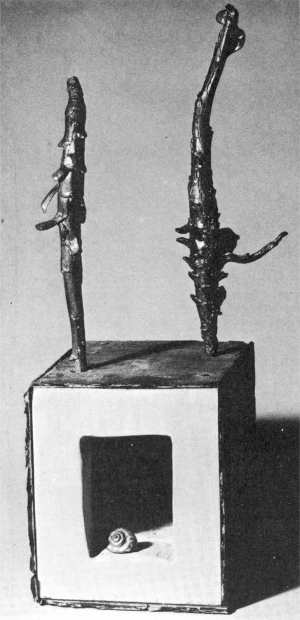 It is not Twiss's earlier work that causes any difficulty: rather, what he has been doing recently. The earlier, human figures (vaguely reminiscent of the work of Henry Moore) are easy enough to deal with: but his later and current sculpture? Scaffolding? Carpenter's rule? Spectacles cast in bronze and fastened to some kind of a plinth by a G-clamp? Constructions that are strictly non-functional?