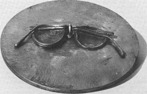 A characteristic worthy of note, and held in common with a similar attribute in the work of Hellyar and Stringer, is a concentration on subjects excluding the directly human, but implying its presence outside the immediate point of reference or line of vision. The latter is obvious in such works as his plinth with spectacles (the spectacles themselves being cast in bronze), Doors constructed of sheets of iron and loosely fastened with cord (c.f. the related work, Fresh Widow, 1920, by Marcel Duchamp), or his plinth with carpenter's rule, a G-clamp, and accompanying shadow.