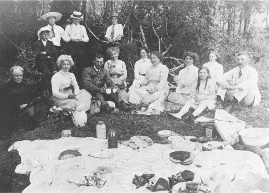 The plump-faced, muslin-frocked Frances is undoubtedly the central figure, and she appears to be surrounded by family and neighbours. But when and for what purpose- It is tempting to date it 1911, and identify the function as Frances Hunt's twenty-first birthday party Alas for that supposition she was born in July, so the gathering, obviously held in summer, must have celebrated some other occasion: perhaps Christmas or New Year. Whatever its nature it is almost certainly pre-1914, and points to the kind of community in which Frances reach adulthood: rural, prosperous, stable, genteel, but not excessively so. There are no menials - and, the thought occurs in this race-conscious era, no Maoris.