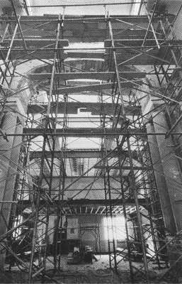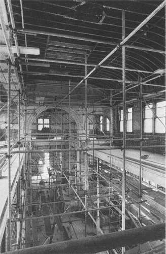 The East Wing before the removal of buttresses and paired columns and before the complete insertion of the two new floors.