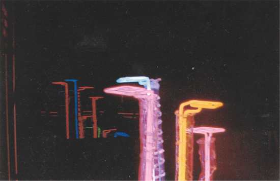 The neon lighting aspect in association with assemblage has been a direct result of observing the use of fighting for window displays and street advertising. Diana approached Mr Ted Maney, lighting co-ordinator at Clearlite Signs, Takapuna, with the idea of using neon in conjunction with assemblage. 'Ted was intrigued by the idea of using neon in association with assemblage, and with the potential for re-discovering neon lighting as an art-form. Ted gave me technical information on neon and when I had evolved a technically feasible assemblage, he and his staff collaborated to produce neon lighting from my designs.'