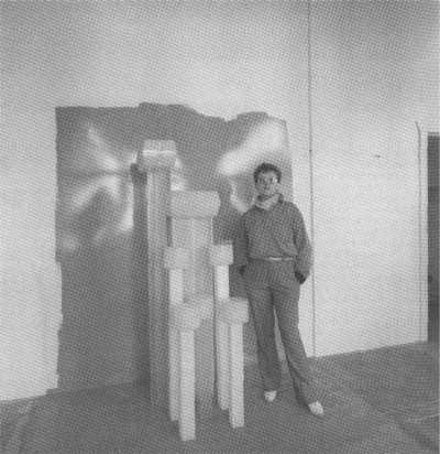 'I invented a light sensitive apparatus, using micro-light sensors, integrated circuit chips, a sound oscillator and amplifier of the type used in 'Space Invader' machines, The interaction of movement (people) passing through the light beams trained on the sensors activated the sound oscillator connected to the circuit chip, causing sound fluctuation, thus involving those visiting the gallery on a participatory level with Astros II. I had a limited knowledge of electronics, but at the time of the idea I was fortunate to meet a visiting physicist from Waterloo University, Canada, Lyle Robinson, who was fascinated by the idea of introducing sound into the works, and gave his knowledge and advice in assisting with the project.'