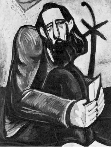 Here we have an exquisite group of small icons for a backyard shrine. Drawing unashamedly on the work of Rouault, Brown re-interpreted that European vision in a New Zealand setting. The pathos of the axeman, showing his spiritual side as he falls on his knees before the visible fruit of his faith and toil, is balanced by some of the finest use of colour in all Brown's work.