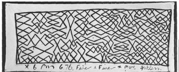 Formal resolutions of the regulation/ impulse conflict are favoured by other artists. Usually a regular network of lines is set up and then 'interrupted' or subverted in some way. Don Peebles in his large Untitled (1978) undercuts what is basically a series of repetitive patterns by painting freehand and then leaving the work's hanging indeterminate; while earlier pieces Painting (Linear Series 19) and Untitled (1973) are entirely regular grids, except that in some square patches of earlier layers of paint 'show through'.