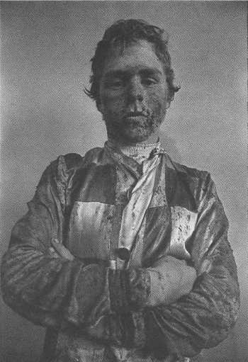 His manner is truculent, an immature pride that resists the stock ingratiating smile. Since this is not a peep shot, we need to read into the photograph the kind of consent revealed in the apprentice's manner, and read the nature of the photographer's provocation of this consent.