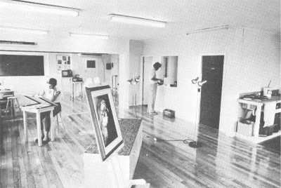 The Whitecliffe school uses up-to-date equipment, including video, and produces its own in-class material. I was shown a sequence directed towards a life class. Video's ability to freeze and replay movement provides a superb tool for students investigating in this area. Other videos in the library record interviews with artists, and exhibitions held in the two Whitecliffe Galleries.