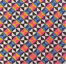 Unlike other local painters in this genre who depend upon simple colour combinations for effect, Griffiths uses complex colour arrangements, exploring at once the sensuous qualities of colour and the fascinating proliferation of pattern made possible by its careful control - colour within a rigid mathematical framework.