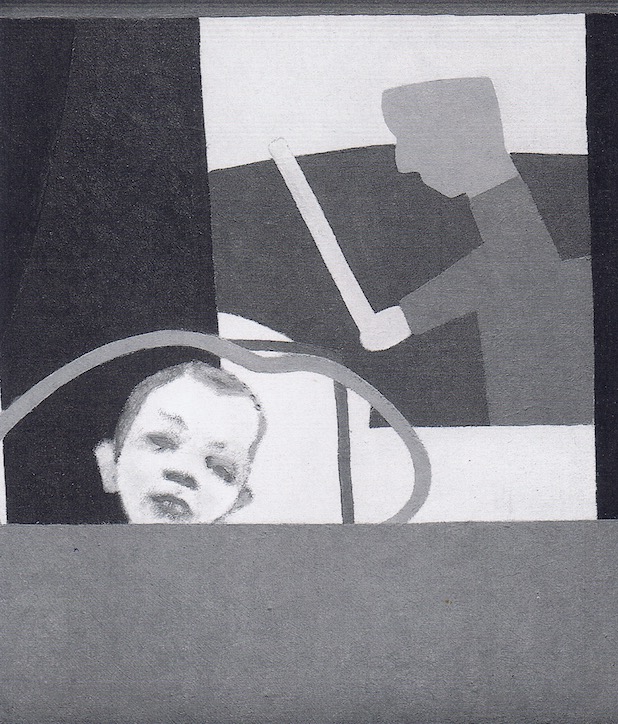 Perhaps a clue can be found in the recurring imagery specific to Stevens' paintings, particularly in the way he typically renders humans as disembodied heads. One of the more extreme examples of this is Local Knowledge (1992) in which the head of a horse or donkey is talking to the bowed head of a bearded man which is also on a stick. In Bound for Glory (1978-79) the head is completely bandaged. In Sleep, Sleep (1987) Mr Punch is threatening the haloed head of a child with his stick. Such images abound. And often, the paintings display a disjunction between their meaning and their vibrant colours and peaceful composition. This disjunction can invite laughter, but more often than not, it serves to accentuate the sadness of a world in which humans are subject to forces greater than their own. In many ways, the psychological space of these paintings is that of unresolvable conflict, like that of a child venturing the absolute while riding a familiar rocking horse.